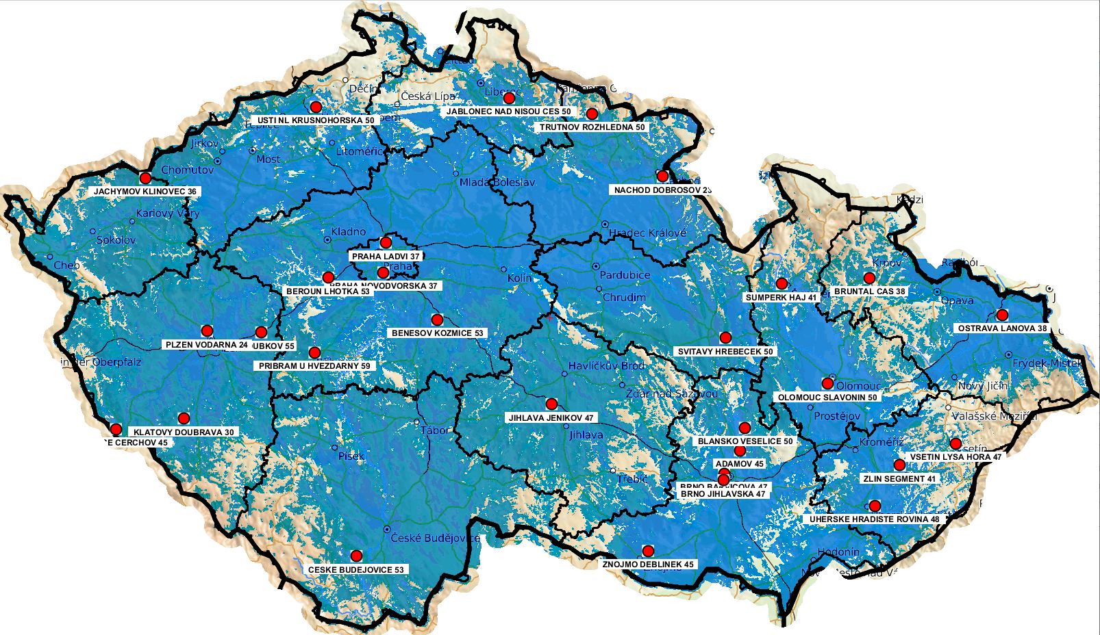 Mapa pokrytí: