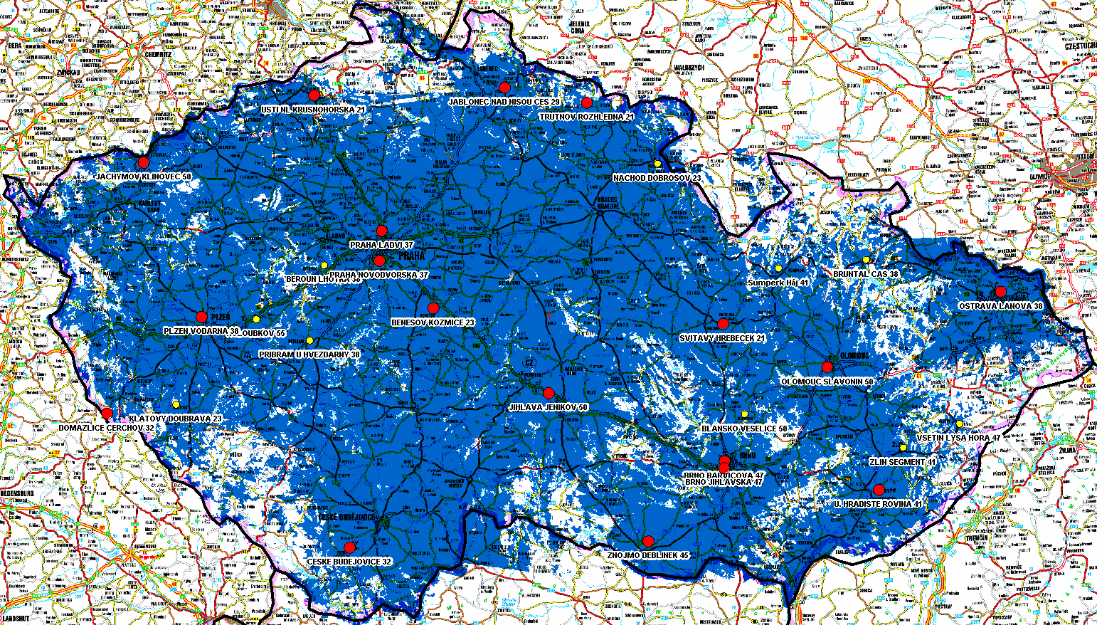 Mapa pokrytí:
